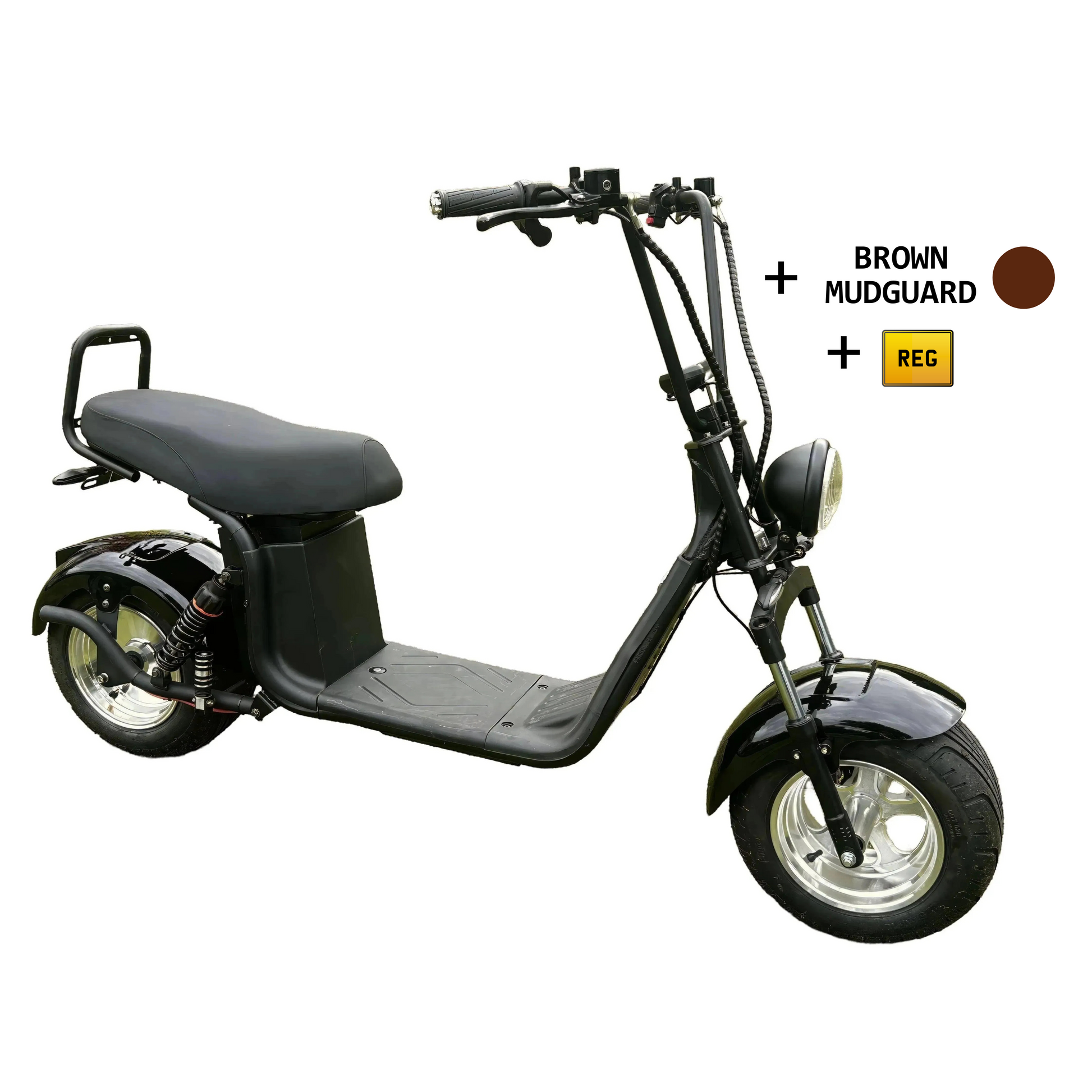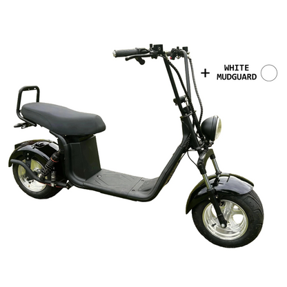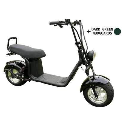 Electrically powered, with a top speed of 28mph, this is the perfect vehicle for getting about cheaply and easily. A real-world 20-mile range and only 40p to charge from empty. A two-person seat and pillion pegs make it easy to take a passenger.