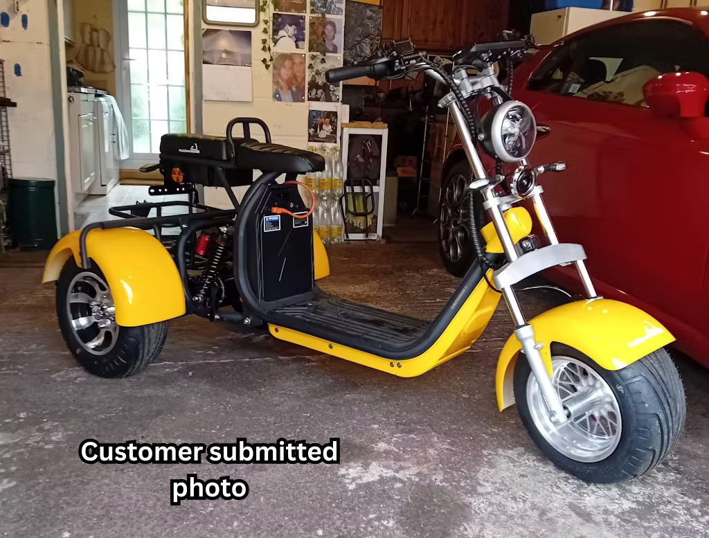 Now the important stuff, I have the Labicana Trike with the extra battery and the 3000w motor it was delivered on time although not as shown but this I put down to the courier, however the trike was so thoroughly well packed and packaged I doubt the courier could have damaged it if he'd dropped it out of a helicopter on to my front garden. Note to anyone storing trike outdoors over winter, Partially charged batteries can start to freeze at the same temperature as water, 32 degrees Fahrenheit .That's 0c I pulled this information off the internet.