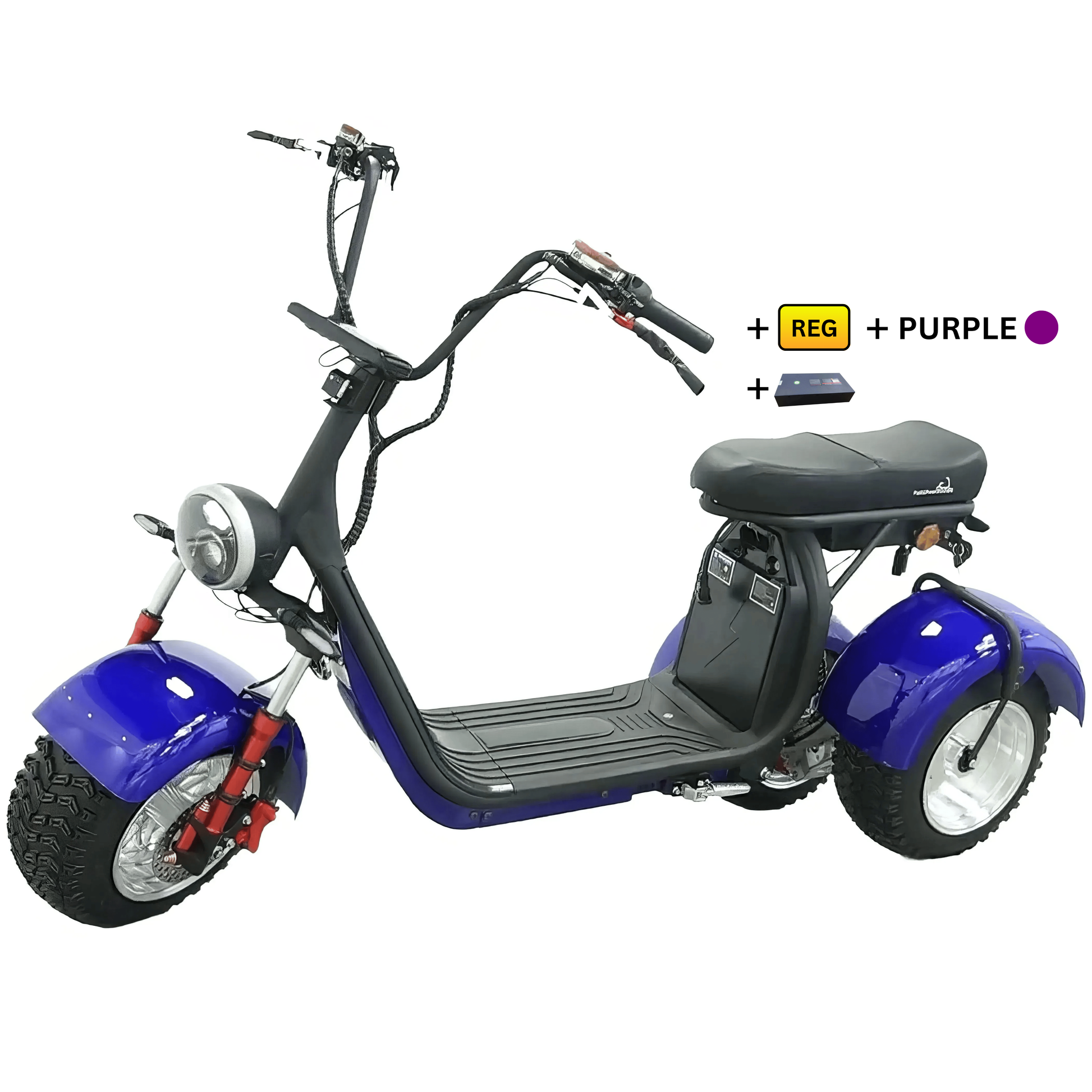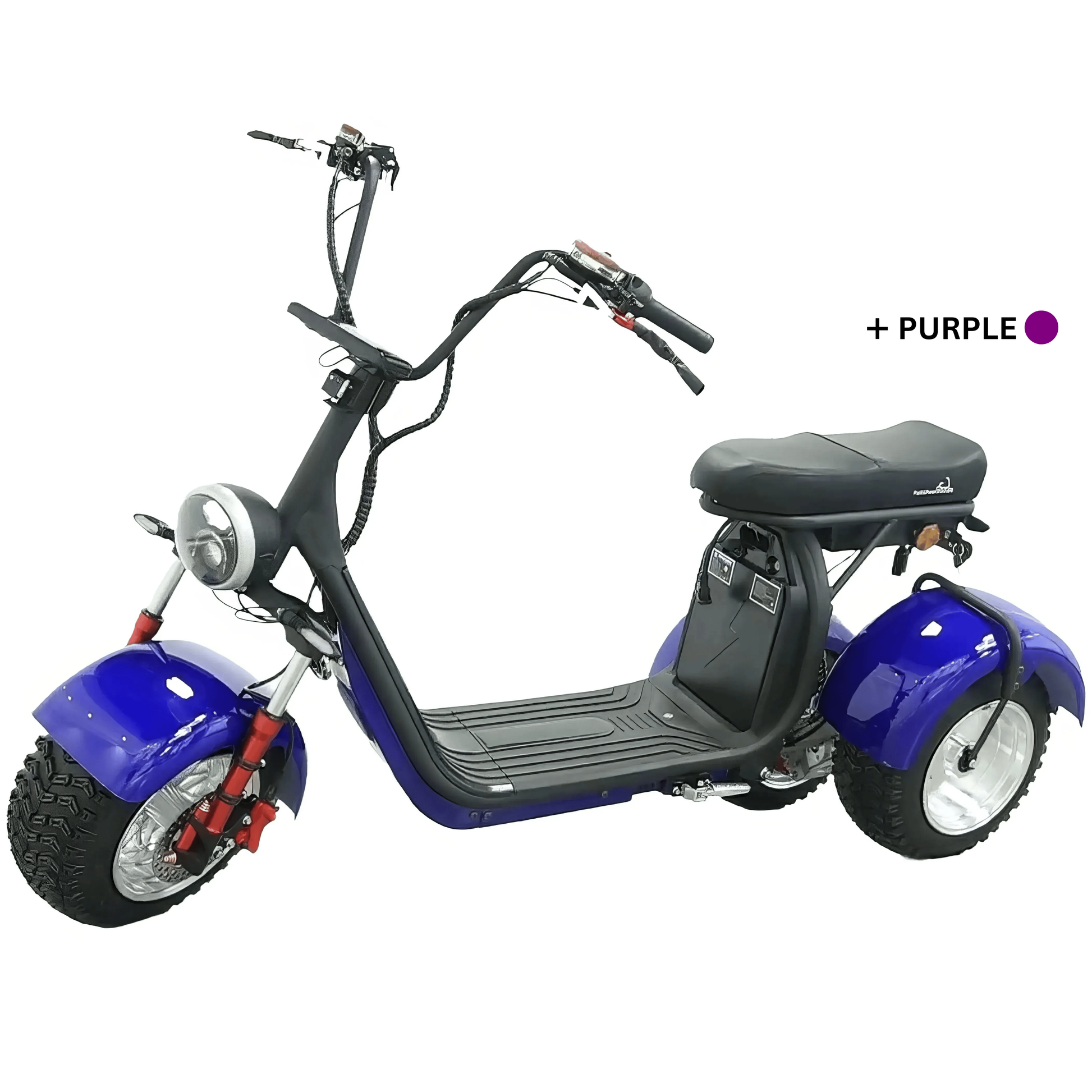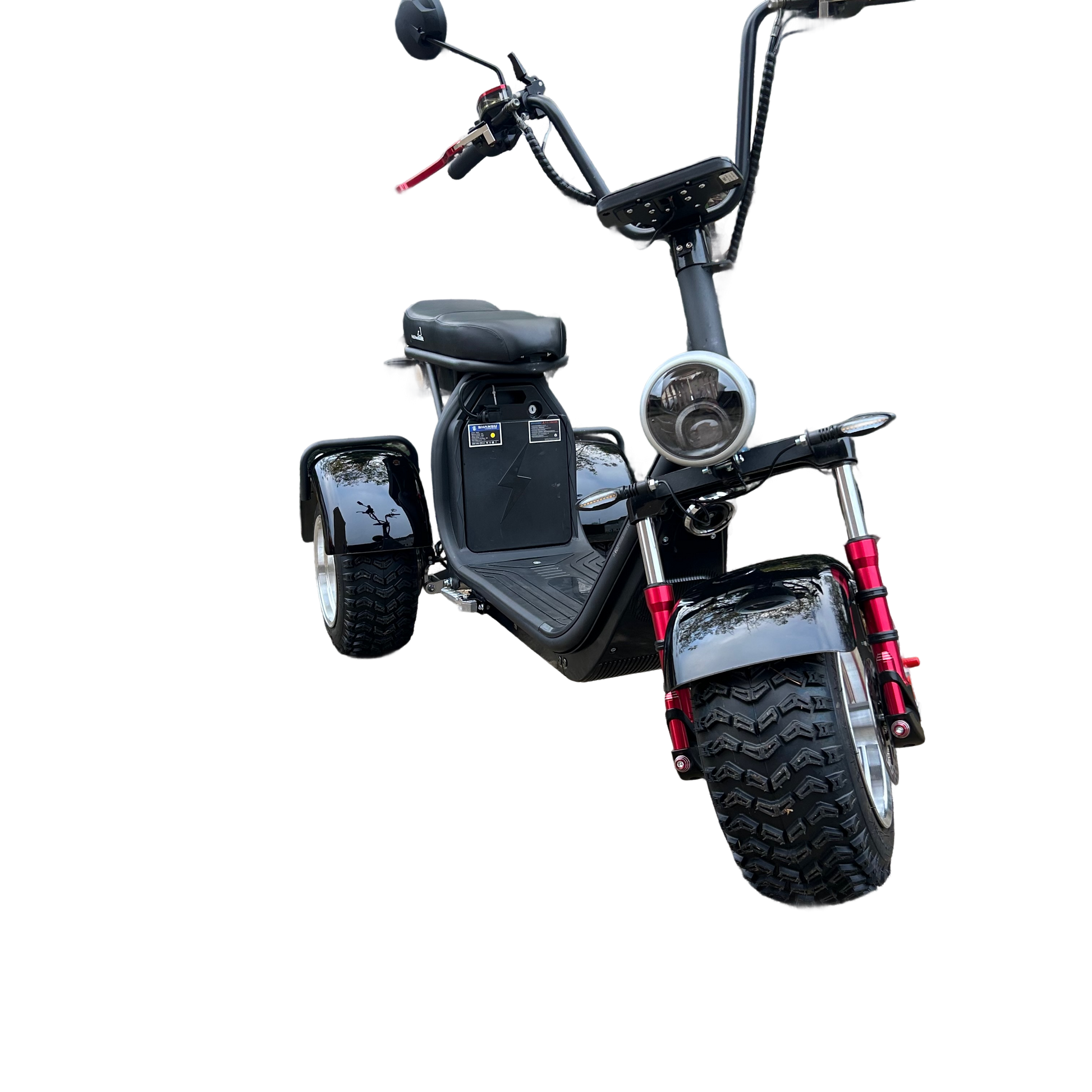 Both rear wheels have their own motor and the rear suspension has a tilting mechanism. Combined with offroad tyres, this is the perfect tricycle if you fancy going off the beaten track, well equipped for use on sand, mud and hilly terrain.
